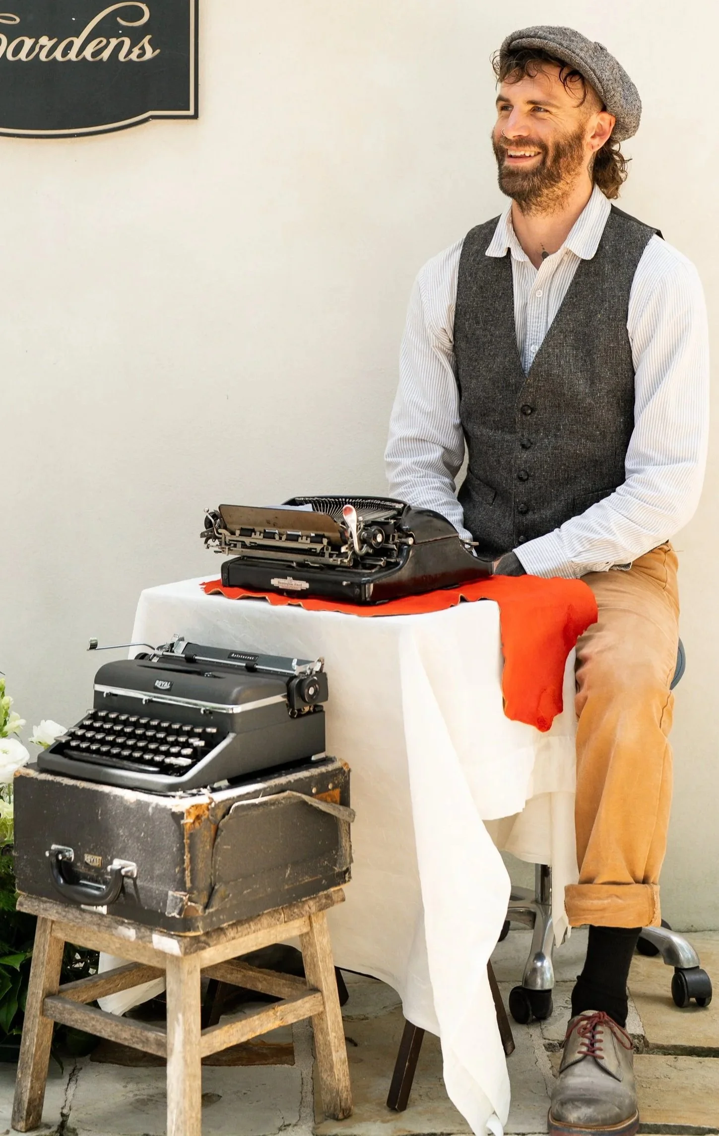At the East Bay Typewriter Poets Collective, our styles of poetry all vary, but the philosophy of the form is the same. Typewriter poetry isn’t about flattery or regurgitating sentimental platitudes. We’d be bored to tears by that and so would you. We’re interested in the particularity of your life and your imagination - and how we can turn that particularity into something interesting, something funny or poignant or thought-provoking or even just profoundly odd. The typewriters are a kind of lightning rod, attracting people that are charged with enough romance and whimsy to take a risk. And it is a risk - who wants to be trapped behind a fake smile while some idiot in a funny hat blandly recites an objectively terrible poem? Nobody, least of all us. If we’re going to wear the funny hats, we’re gonna do our darndest to write you a good poem. All we ask is that you take the risk of putting something of yourself in it.